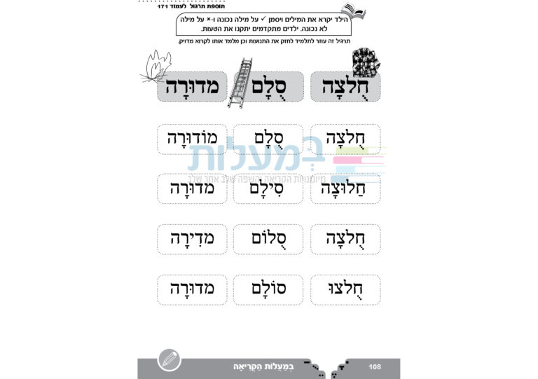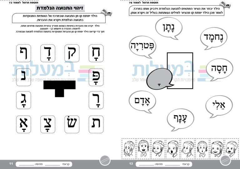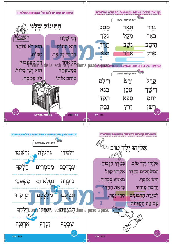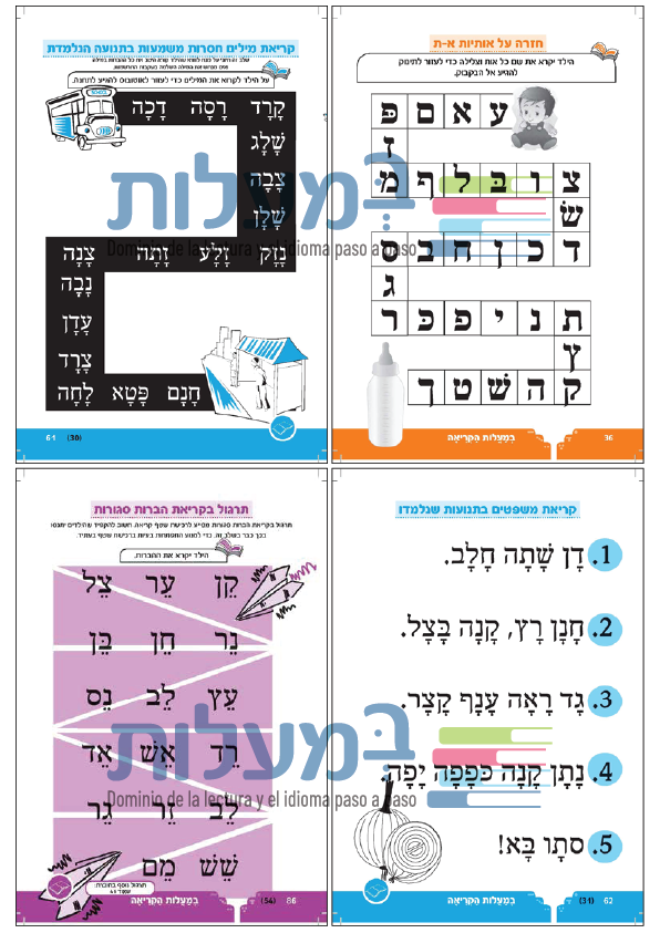 “Bemaalot Hakriá Beth” conduce al alumno hacia el aprendizaje de la lectura con Tnuot (vocales) de forma gradual y sistemática, a través de un proceso claro para el niño, que le permite lograr una lectura precisa desde el inicio.