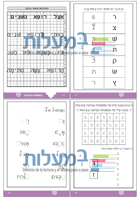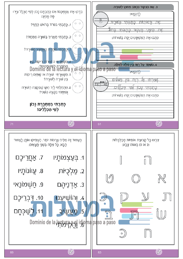 Este libro es un complemento de “Bemaalot Haktivá Alef” adquisición y práctica de la escritura del Alef Beth con letra manuscrita.