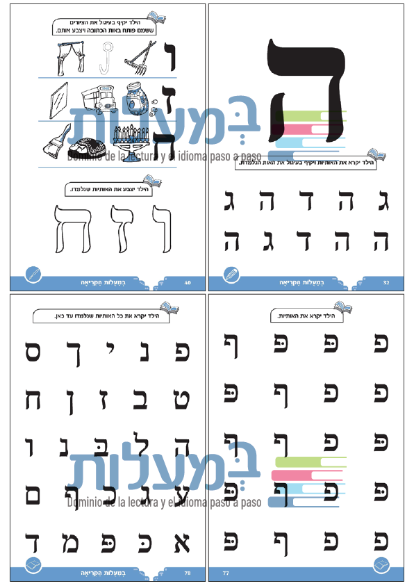 Bemaalot Hakriá Alef facilita al alumno el aprendizaje de las letras del Alef Beth, a través de un proceso gradual y sistemático de reconocimiento, memorización y práctica de las letras.