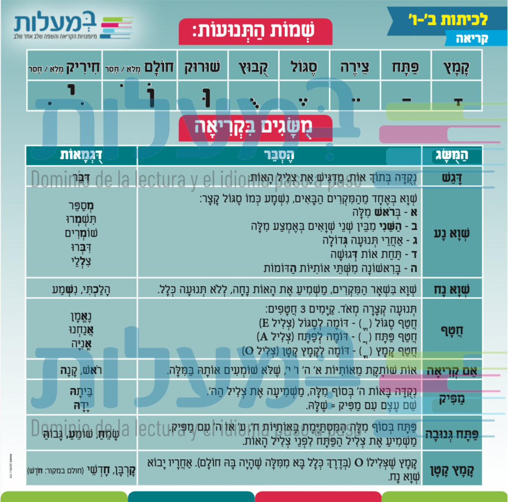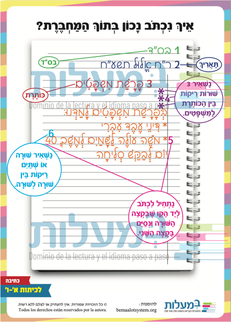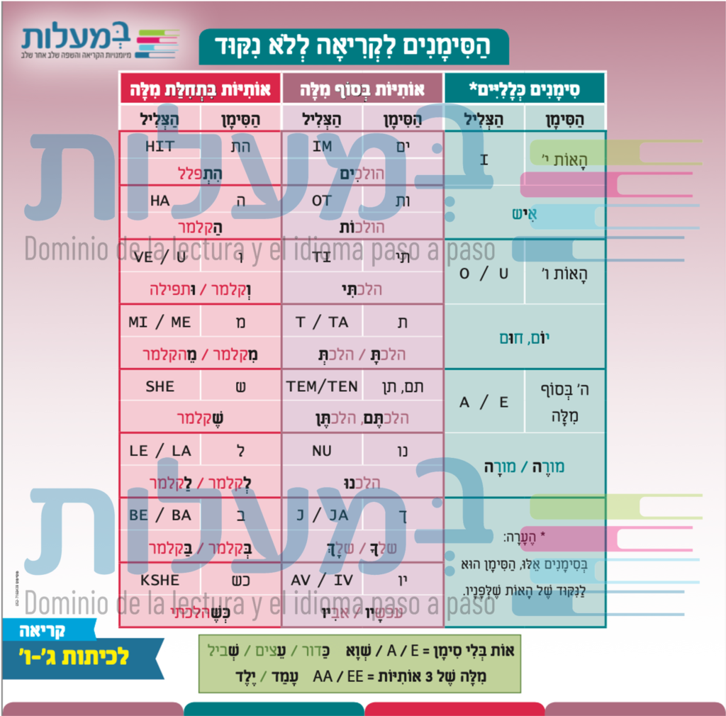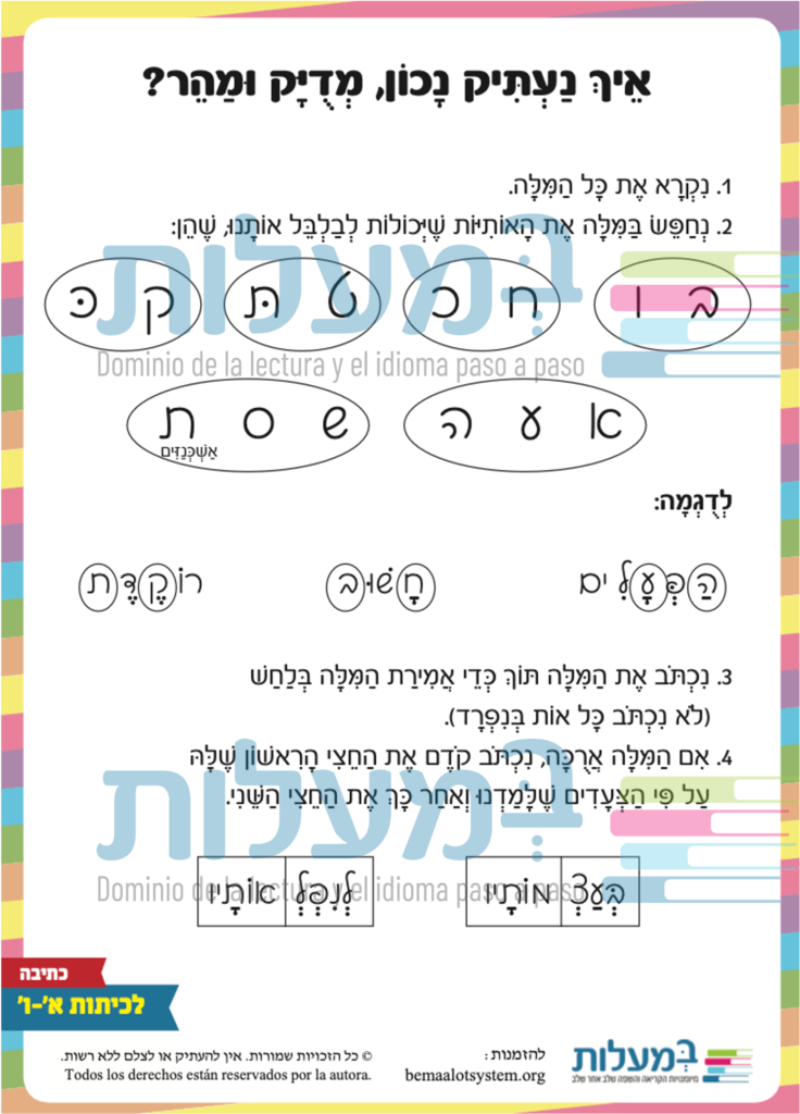 Lectura Tarjetas para repasar letras de Rashi Cartel para enseñar lectura sin Nekudot Cartel para conocer las letras de Rashi Cartel para enseñar letras parecidas de Rashi Cartel de los conceptos de lectura Escritura Reglas para aprender a copiar correctamente sin faltas de ortografía Reglas para aprender a escribir ordenadamente en el cuaderno Cartel de apoyo para aprender a escribir las letras Reglas para aprender a escribir correctamente en el cuaderno Cartel para enseñar la base de la ortografia Cartel de escritura correcta de las letras Idioma, comprensión de la lectura y gramática Cartel para aprender las raíces de la palabra Cartel para enseñar los verbos en presente Cartel para enseñar los verbos en futuro Cartel para enseñar masculino y femenino Cartel para enseñar los verbos en pasado Tarjetas para repaso del Otzar Milim en la Kitá Vídeo para repasar el vocabulario